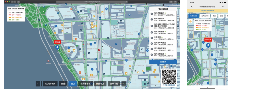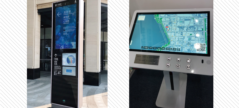 在政务中心、商场等公共场所设置无障碍信息查询终端,为普通人士和残障群体提供服务,可对周边POI建筑搜索并导航。