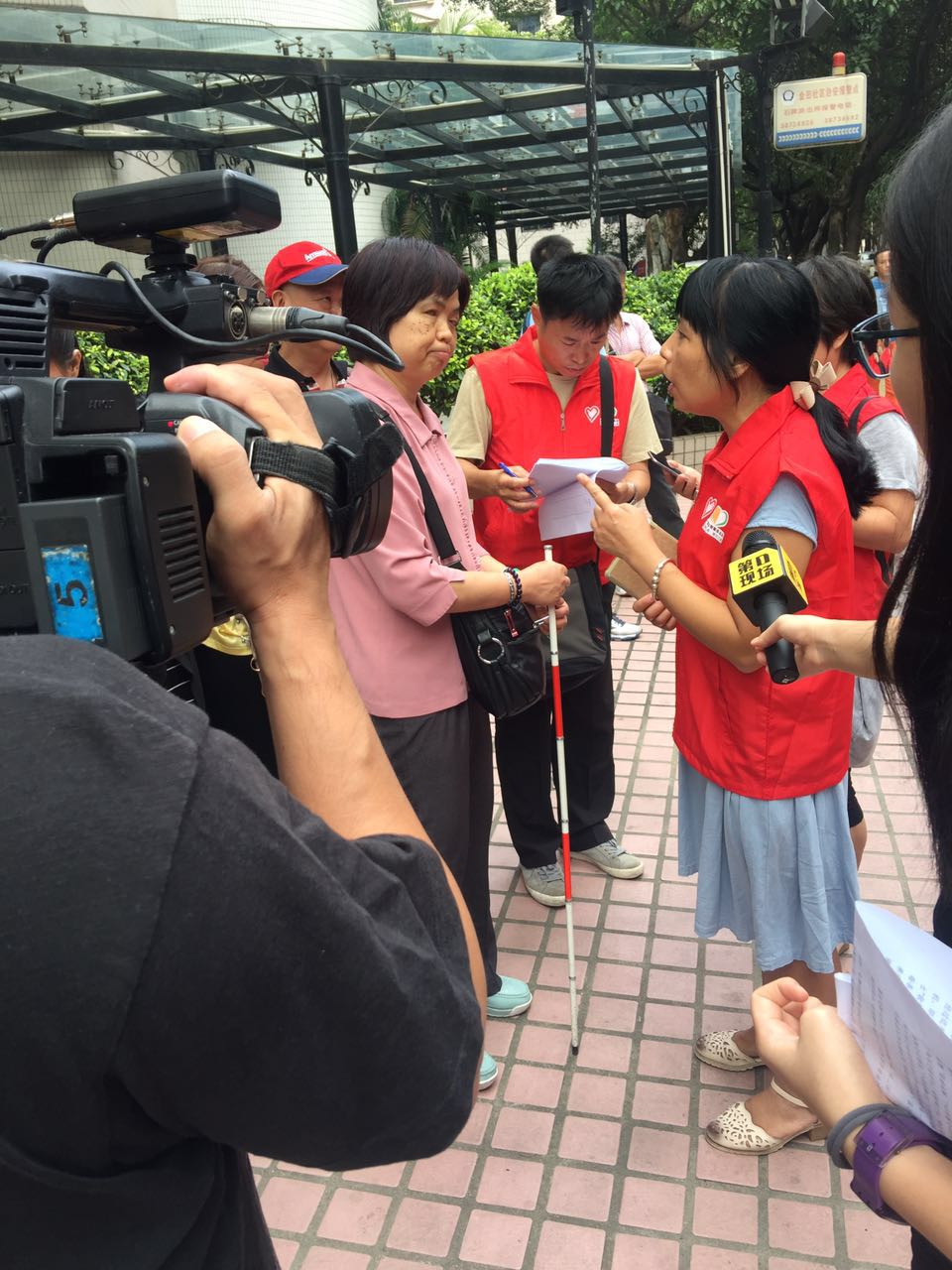 10月17日,广州市盲人协会组织全市200多位盲人举办第33届国际盲人节活动。当天上午,在广州市残联门前更是进行了一场“别开生面”的乘车比赛。在现场,近百位视障朋友,使用着“听听巴士”手机软件,模拟公交到站乘车的实际环境,体验独立出行的活动。